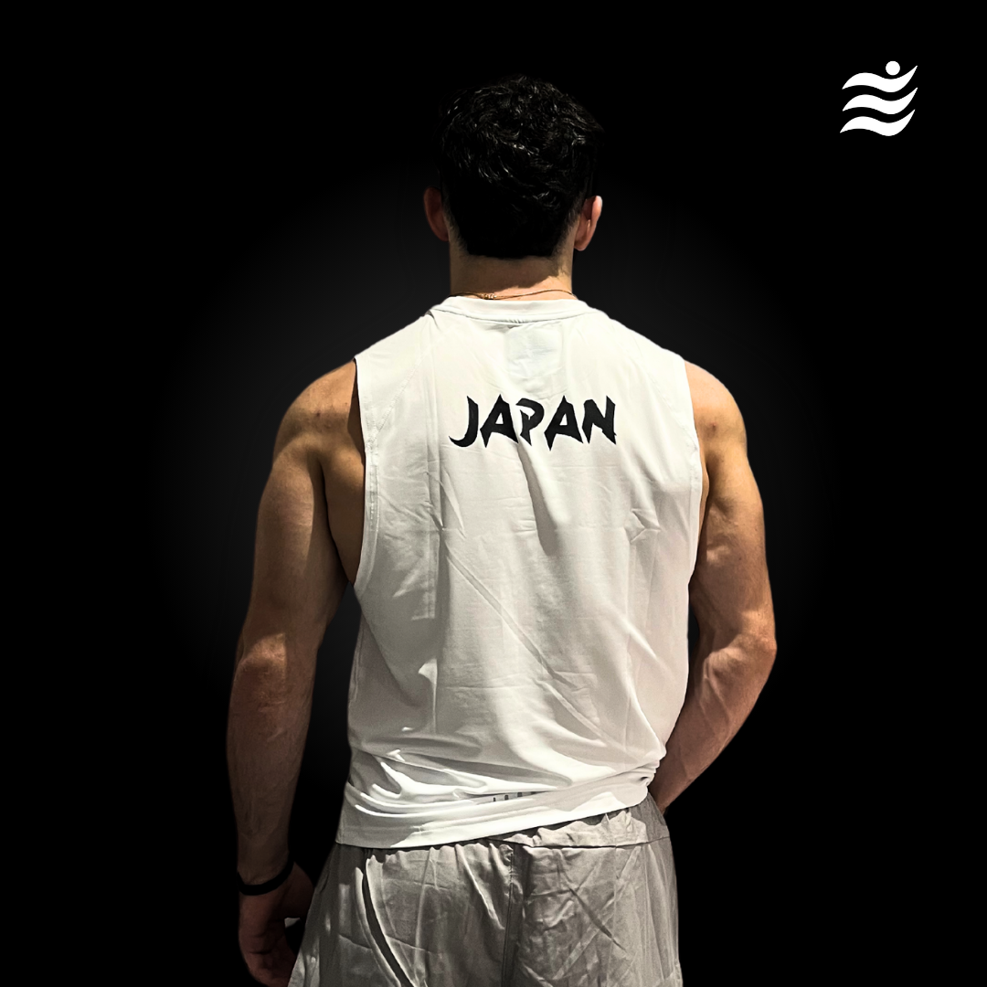 The Gamba Tank is a Team Japan gymnastics-inspired tank top. The design features Katakana Japanese characters reading "Gamba."